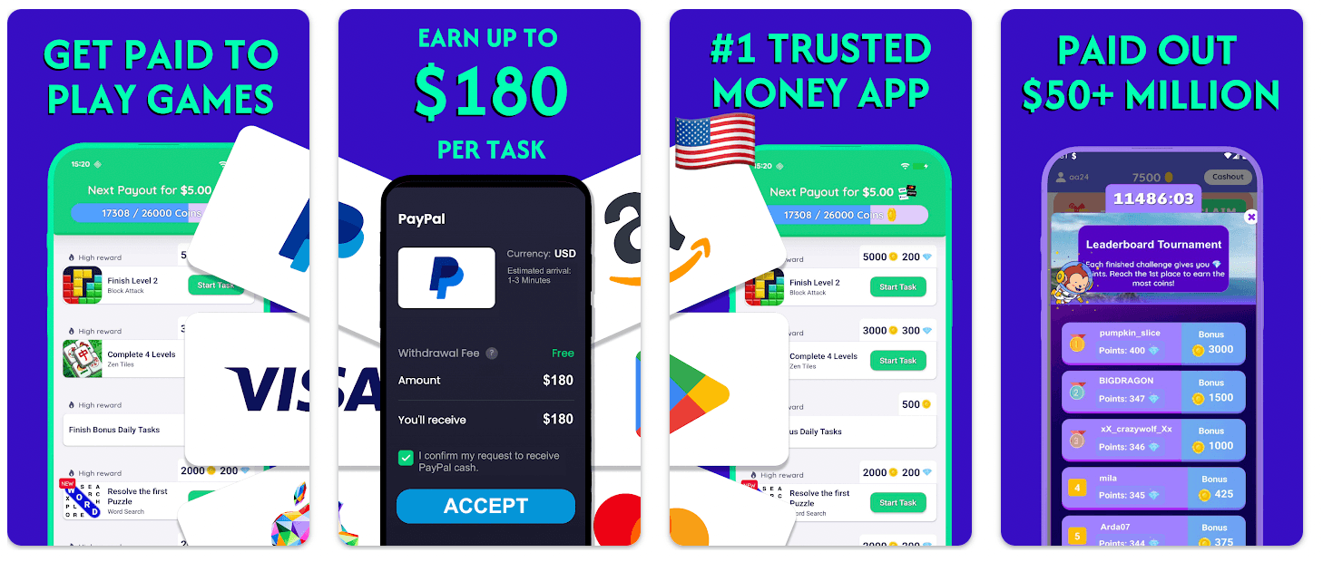 User Experience: The app is designed for efficiency. It pays for both playtime and level progression, ensuring that even if you get stuck on a hard level, you are still being compensated for your time.